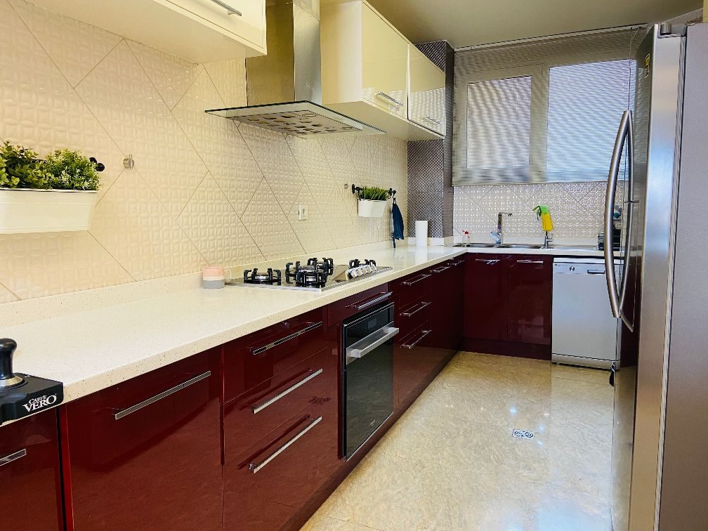 | آشپزخانه : نورگیر, محل ماشین ظرفشویی, گاز رومیزی | کابینت : هایگلاس | ||